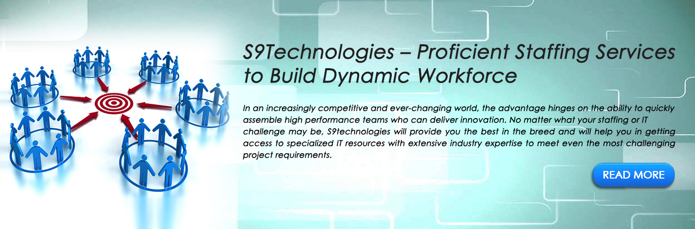 At S9technologies, we are committed to provide pioneering staffing services that help organizations to run optimally and efficiently. We provide a broad-range of resourcing services which include recruitment, consulting, placement and lot more.